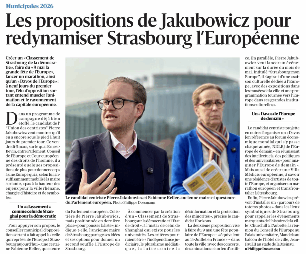 - Créer un “Classement de Strasbourg” sur la démocratie et l’État de droit comme il existe un classement de Shanghai pour les universités : faire rayonner le nom de Strasbourg et pour construire ce classement autour de critères tels que l’indépendance judiciaire, le pluralisme médiatique, la lutte contre la désinformation et la protection des minorités.