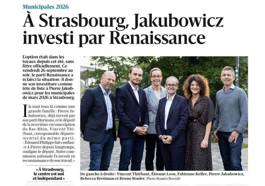 Je me réjouis de l’engagement de Fabienne Keller, Bruno Studer et Etienne Loos pour Renaissance, de Vincent Thiébaut pour Horizons, et de Rebecca Breitman pour le Modem. Leur soutien est précieux et je les remercie chaleureusement de rejoindre cette aventure collective.